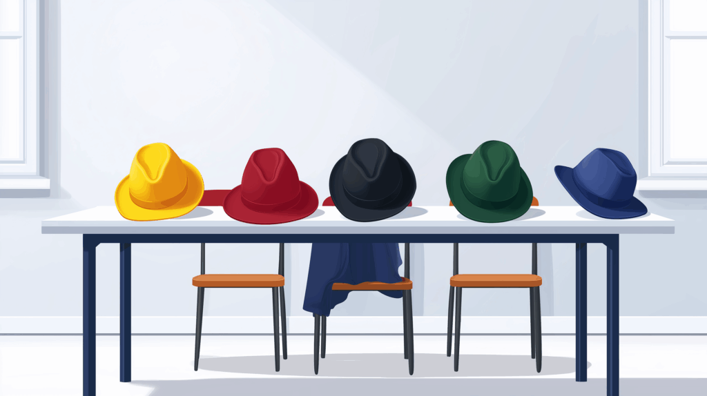 Unterschiedliche Denkhüte helfen dabei, die persönliche Meinung zu einem Thema kurzfristig abzulegen, offen für neue Argumentationen zu werden und die verschiedenen Dimensionen eines Themas zu erkennen.