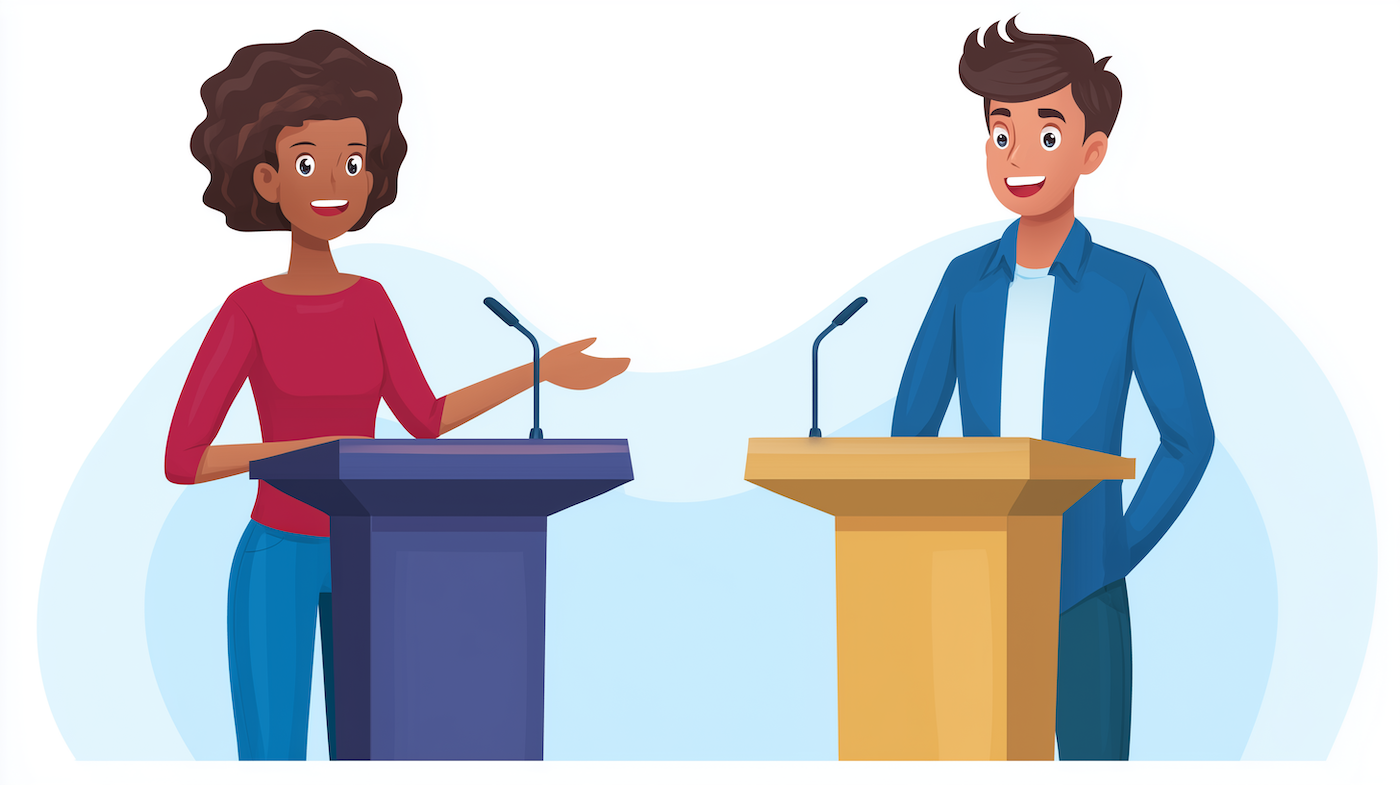• Die Diskussion beginnt, indem jede am Duell teilnehmende Person kurz ihre Position vorstellt und mit einem Satz begründet.
